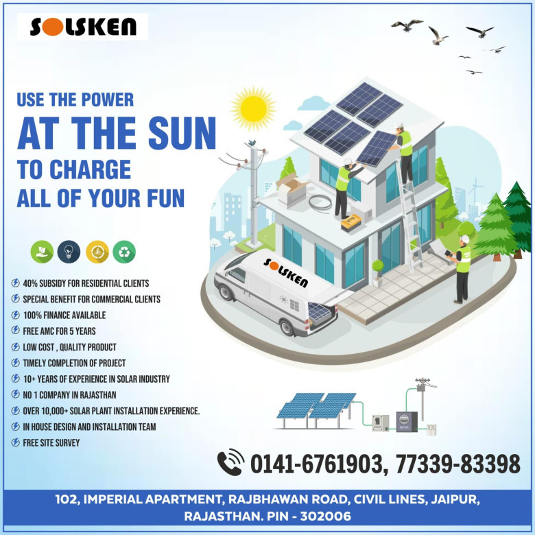 "Solsken Energy is a best solar company in Jaipur, Rajasthan, India. We offer a wide range of solar solutions for commercial, industrial, and residential customers. Our team of experts will work with you to design and install a solar system that meets your needs and budget. We also offer financing options to make solar more affordable. With Solsken Energy, you can save money on your energy bills and do your part to protect the environment. Solsken Energy is the best solar energy company in Jaipur."