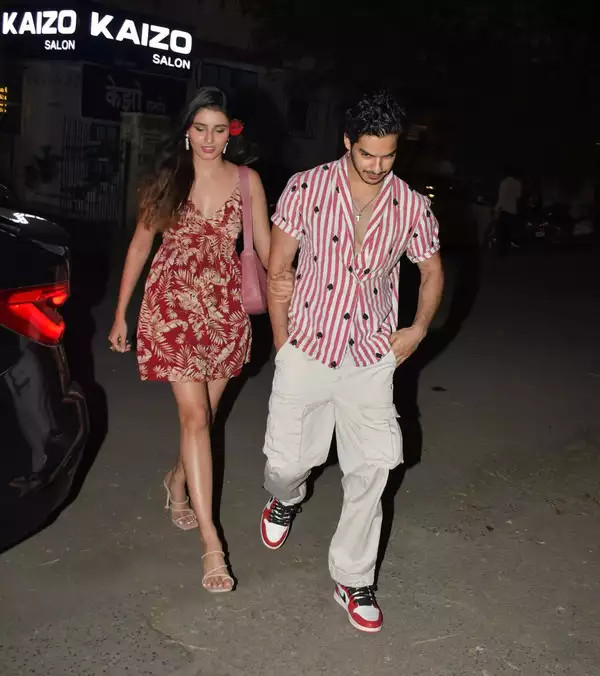 A paparazzo posted a video of Ishaan Khatter and Chandni Bainz walking down a street together on Thursday night. While Chandni chooses a stylish yet understated look in a summer dress with a blue and white design and a white purse, Ishaan keeps things casual with a blue shirt, white trousers and matching trainers while clutching a bouquet of flowers.